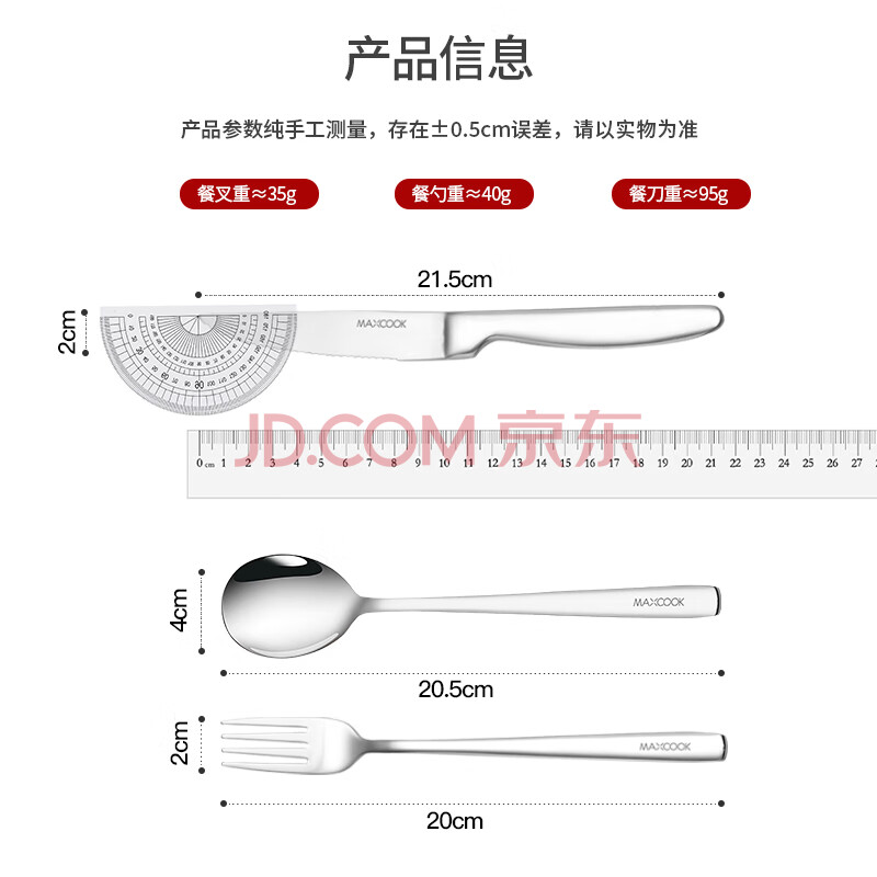 商品相册:美厨(maxcook)316L不锈钢刀叉勺 餐叉餐勺餐刀西餐餐具套装 3件套 MCGC9465第1张/共7