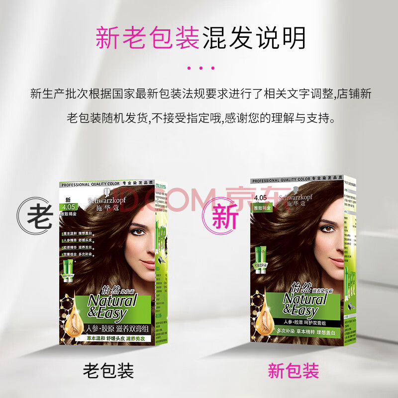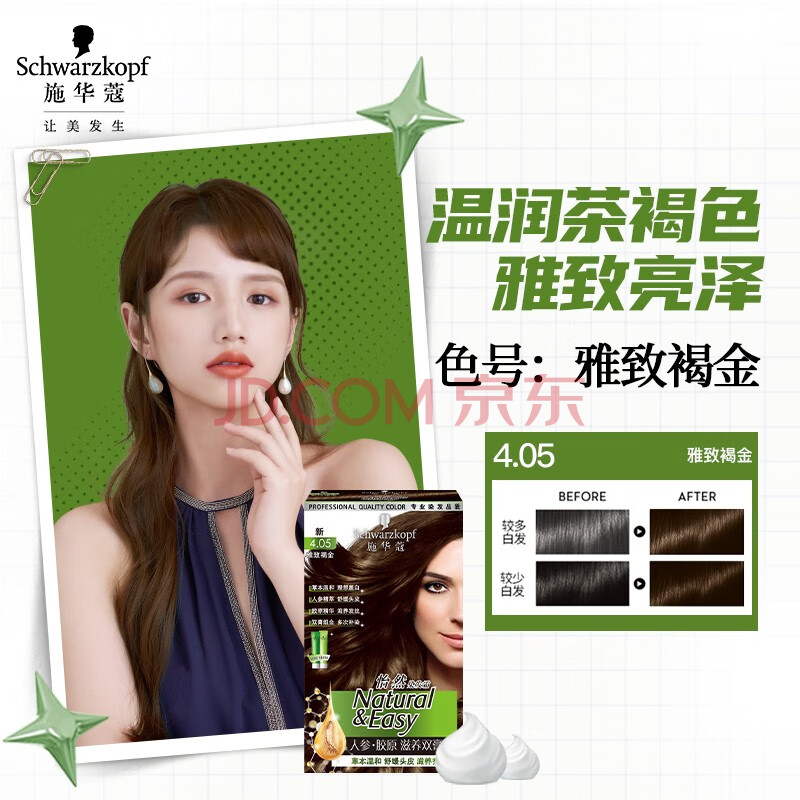 商品相册:施华蔻(Schwarzkopf)怡然滋养染发霜4.05雅致褐金 染发剂染发膏植物人参 多次盖白补染第