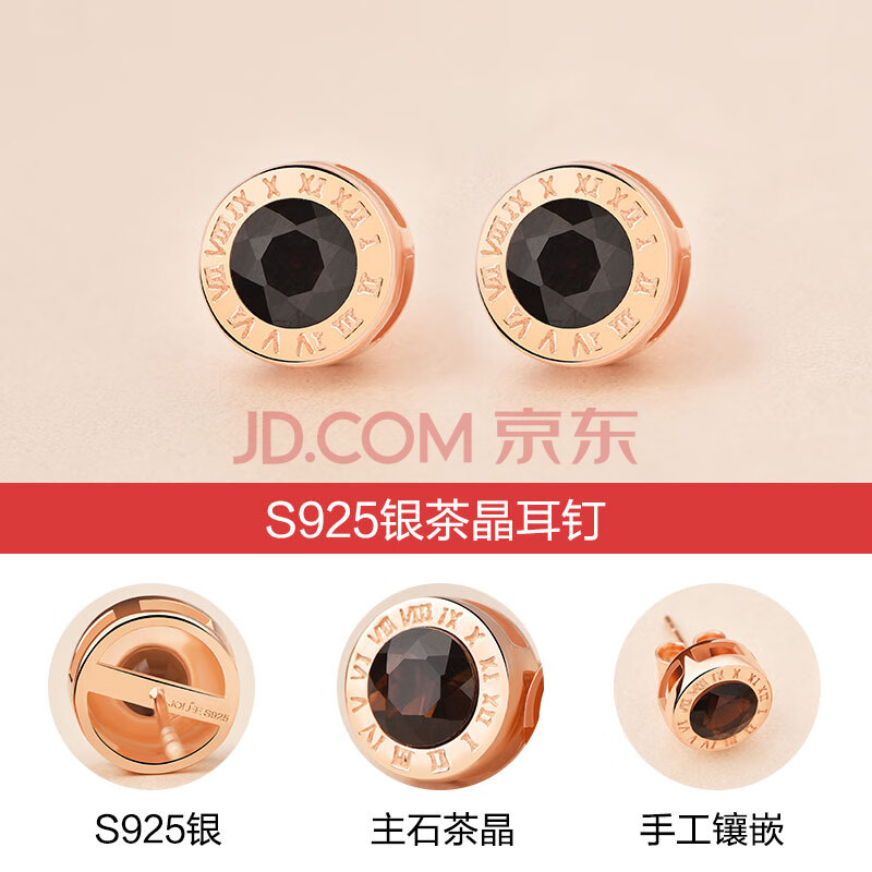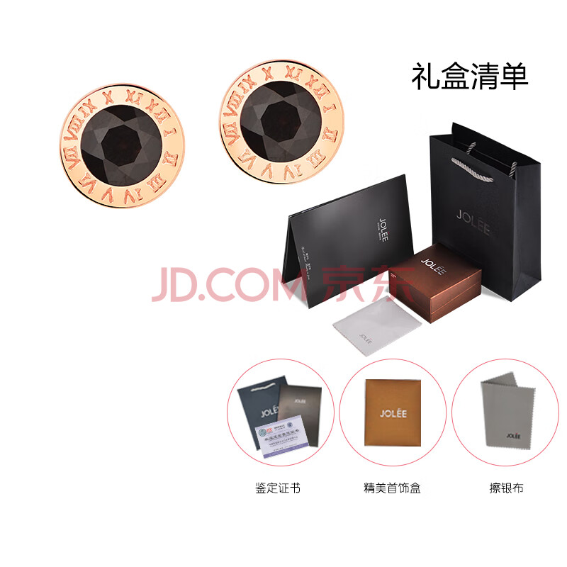商品相册:JOLEE耳钉茶水晶S925银玫瑰金色耳环时尚情侣耳饰品送男生节日礼物第