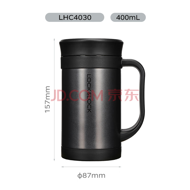 商品相册:乐扣乐扣(LOCK&LOCK)真空保温杯不锈钢商务带手柄水杯子400ml黑色LHC4030B第