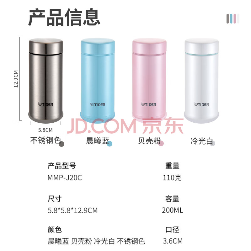 商品相册:虎牌(TIGER)保温杯梦重力不锈钢真空水杯MMP-J20C-AA 200ML 晨曦蓝第