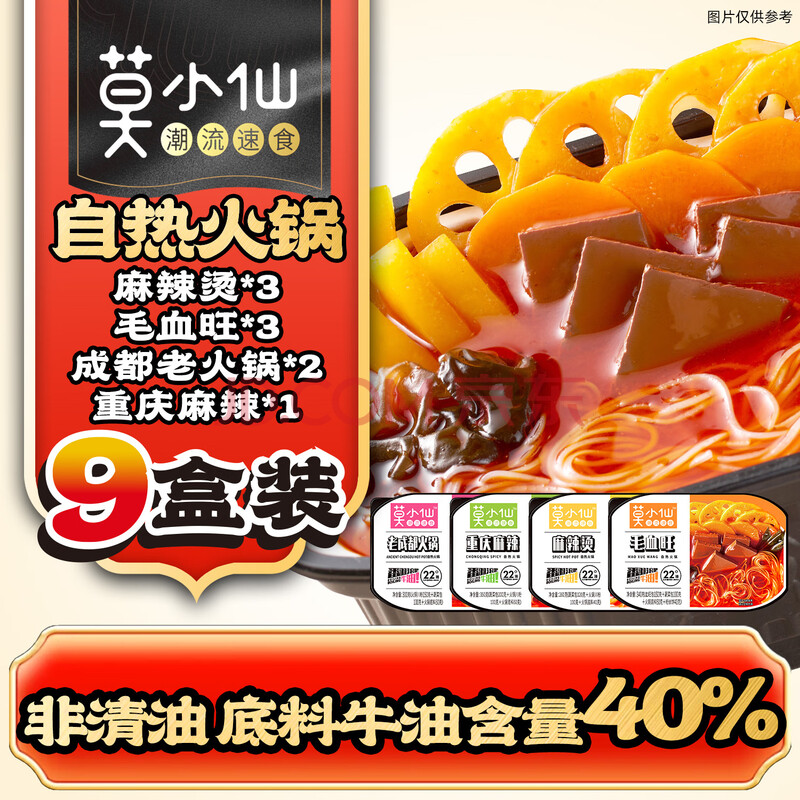商品相册:莫小仙自热小火锅9盒2750g大份量整箱装方便食品速食麻辣烫快餐零食夜宵第1张/共7