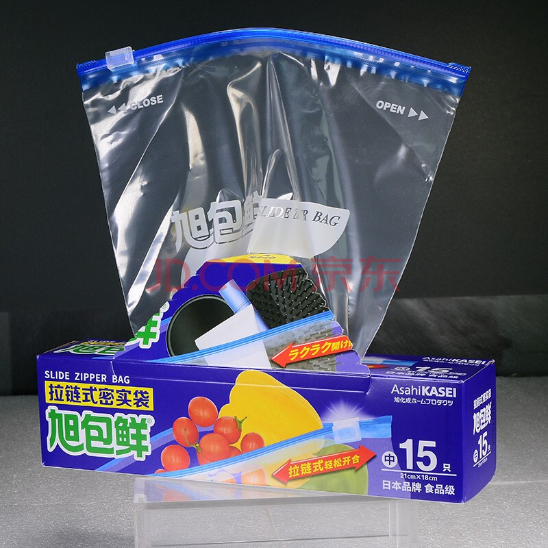 商品相册:旭包鲜拉链式食品保鲜密实袋密封袋自封袋 中号+大号共25只第