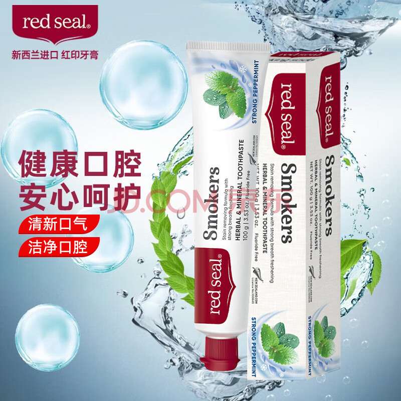 商品相册:红印(Red seal)新西兰进口烟民薄荷牙膏100g 无氟烟民牙膏双重薄荷味 洁净口腔第
