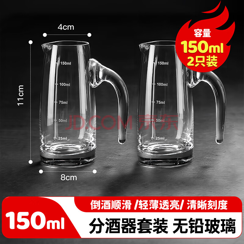 商品相册:美厨(maxcook)无铅水晶玻璃分酒器倒酒壶套装 150ml白酒烈酒洋酒2只装MCB179第