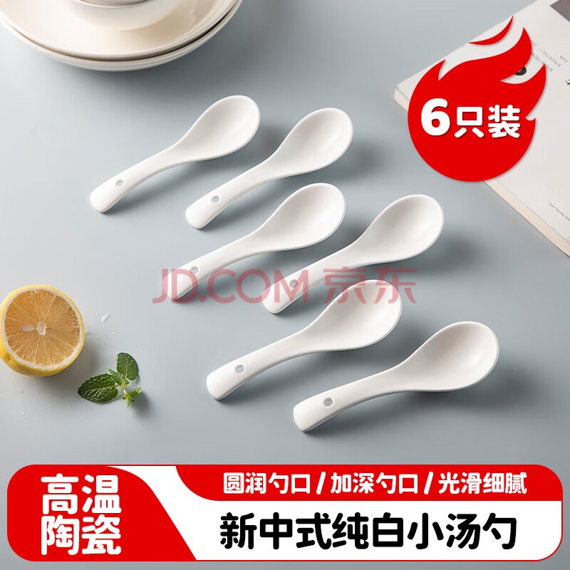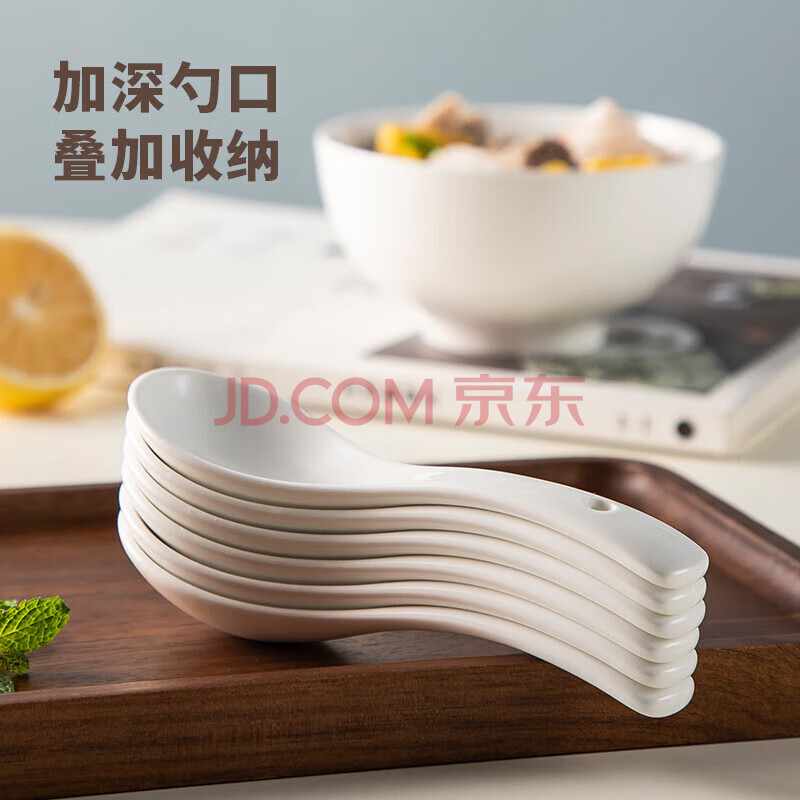 商品相册:美厨(maxcook)饭勺汤勺 陶瓷勺餐勺汤匙勺子调羹 5.5英寸6个装 纯白款MCCU5169第
