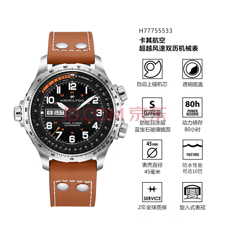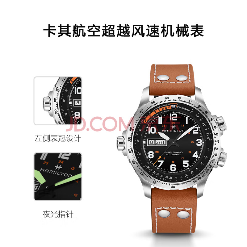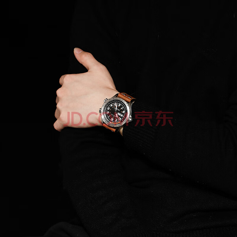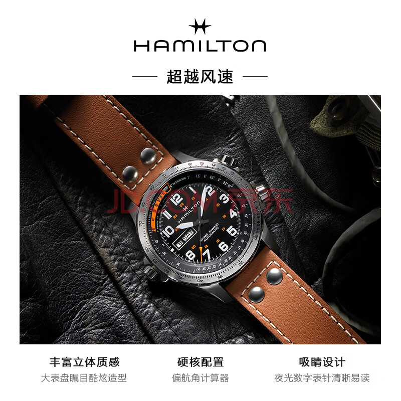 商品相册:汉米尔顿(Hamilton)汉密尔顿男士手表机械表卡其航空超越风速双历45黑盘皮带男士礼物第
