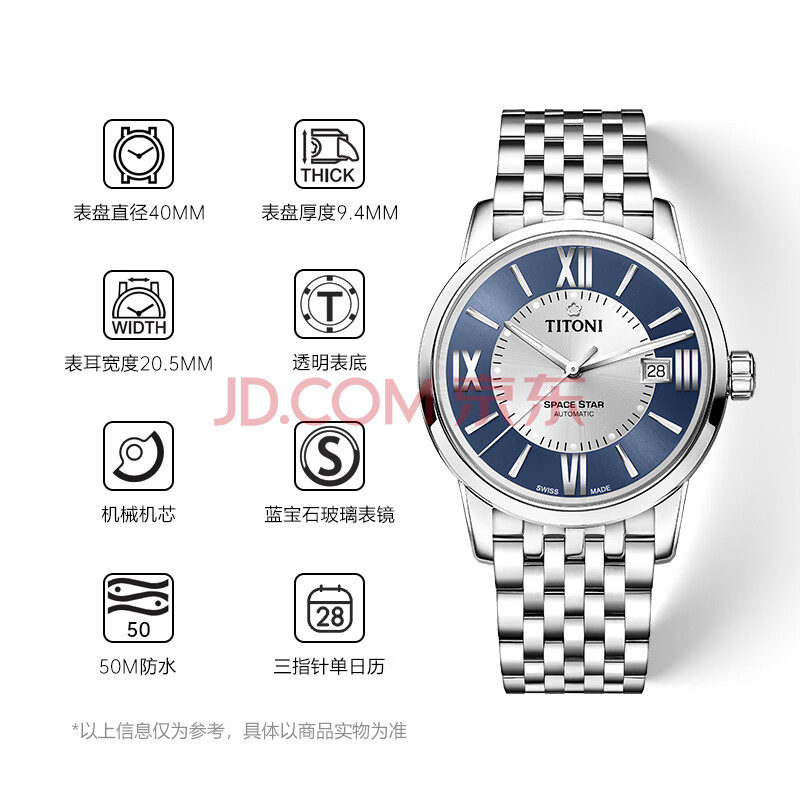 商品相册:梅花(Titoni)瑞士手表进口 天星系列 自动机械钢带男士腕表83538-S-580礼物第