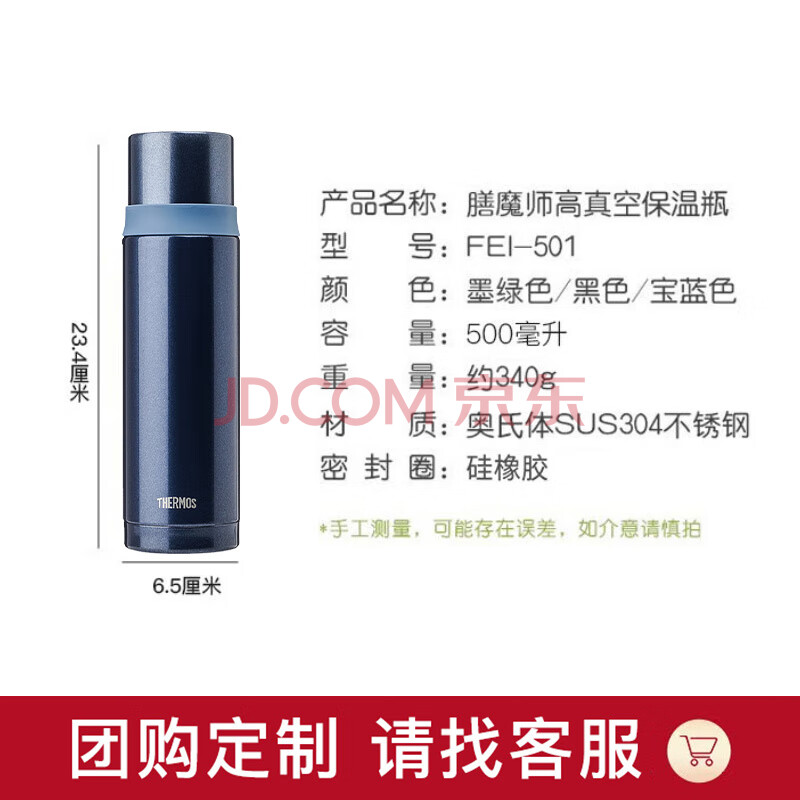 商品相册:膳魔师(THERMOS)500ml保温商务办公带杯盖水杯男女士简约保冷杯FEI-501MSB宝蓝色第
