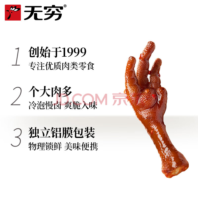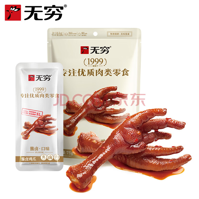 商品相册:无穷酱卤鸡爪子麻辣爽脆大凤爪卤味办公室休闲零食 75g*2包装第