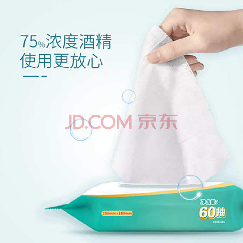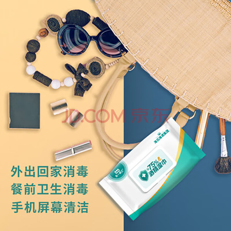 商品相册:海氏海诺乐一享三 一次性75%酒精湿巾纸巾家用卫生大号带盖60抽/包*3包第