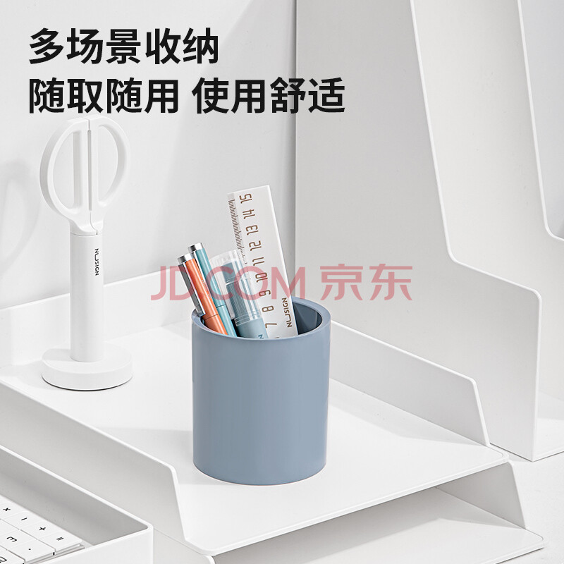 商品相册:【开学必备】纽赛(NUSIGN) 圆形办公笔筒 德国创意设计 办公用品凑单桌面整理收纳 琉璃蓝NS023第