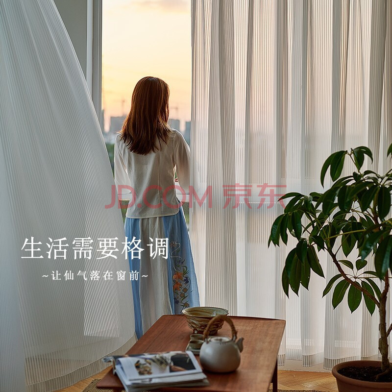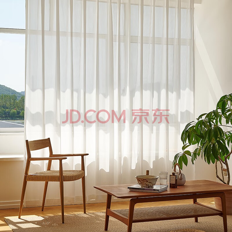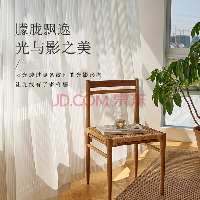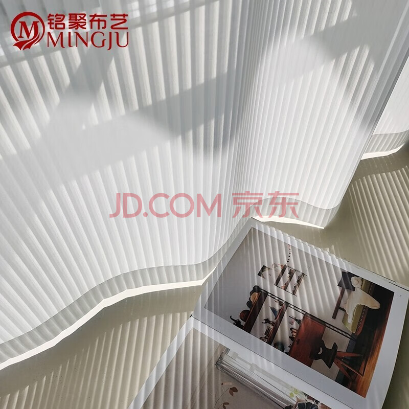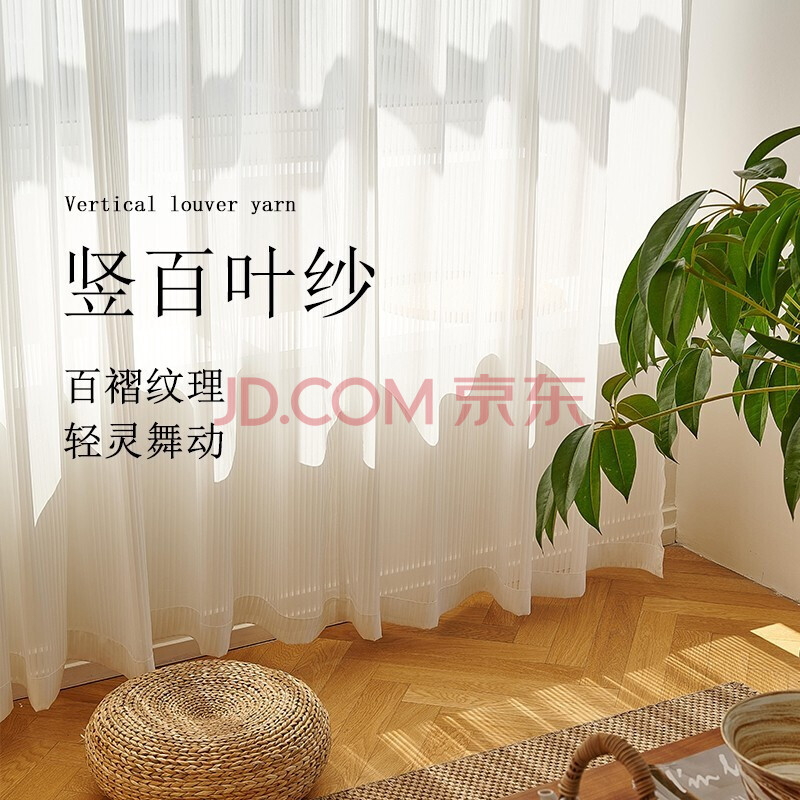 商品相册:铭聚布艺(MINGJU)竖百叶窗纱卧室阳台飘窗梦幻纱帘竖条纹白纱挂钩式2.7宽*2.4高1片第