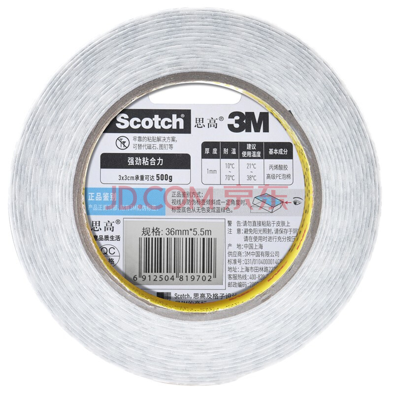 商品相册:3M 思高 双面泡棉胶带(强力型) 320C-36 36mm*5.5m第
