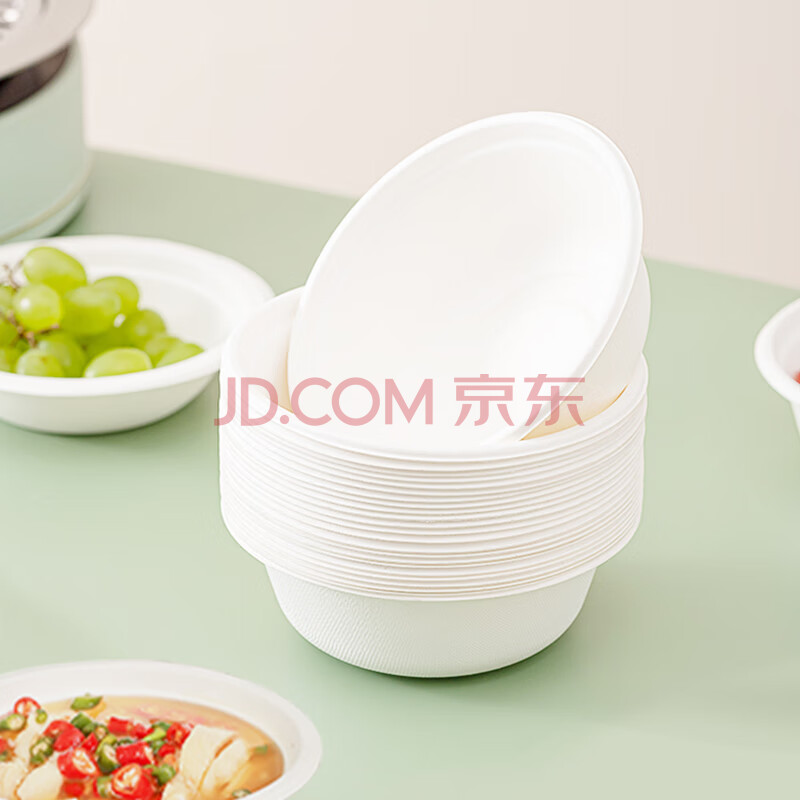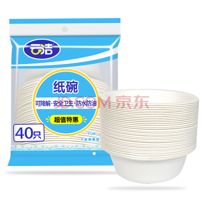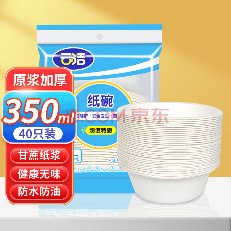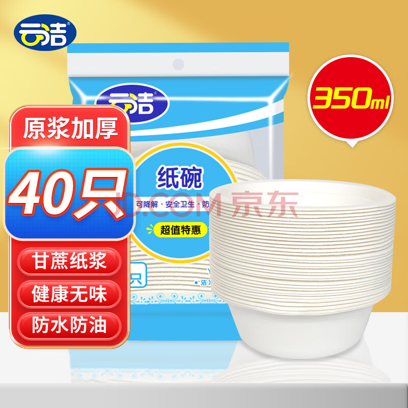 商品相册:云洁一次性纸碗350ml*40只可降解纸碗烧烤野餐食品级甘蔗纸浆防水油第