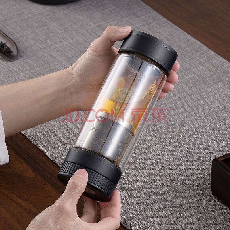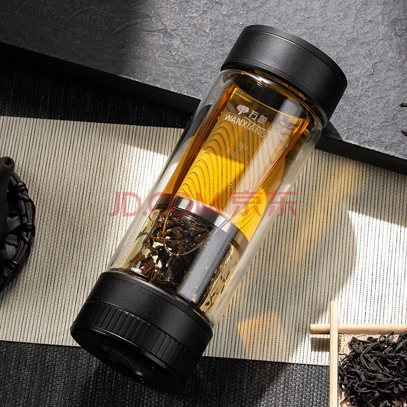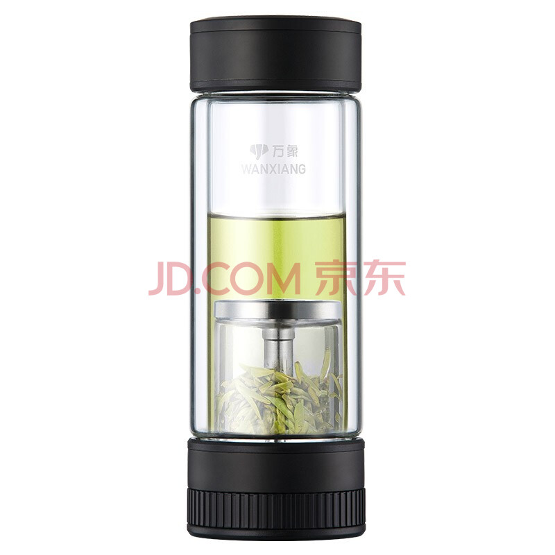 商品相册:万象(WANXIANG)双层茶水分离玻璃杯V258L枪黑色商务办公礼盒装机械开关水杯第