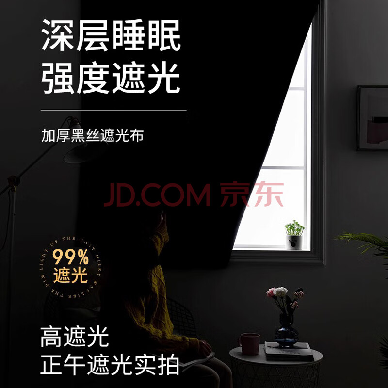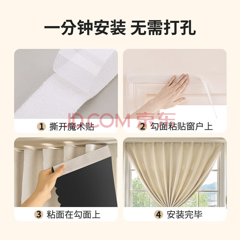 商品相册:阿黎窗帘遮光遮阳帘免打孔家用魔术贴粘贴窗帘宽2米*高2米 米色第