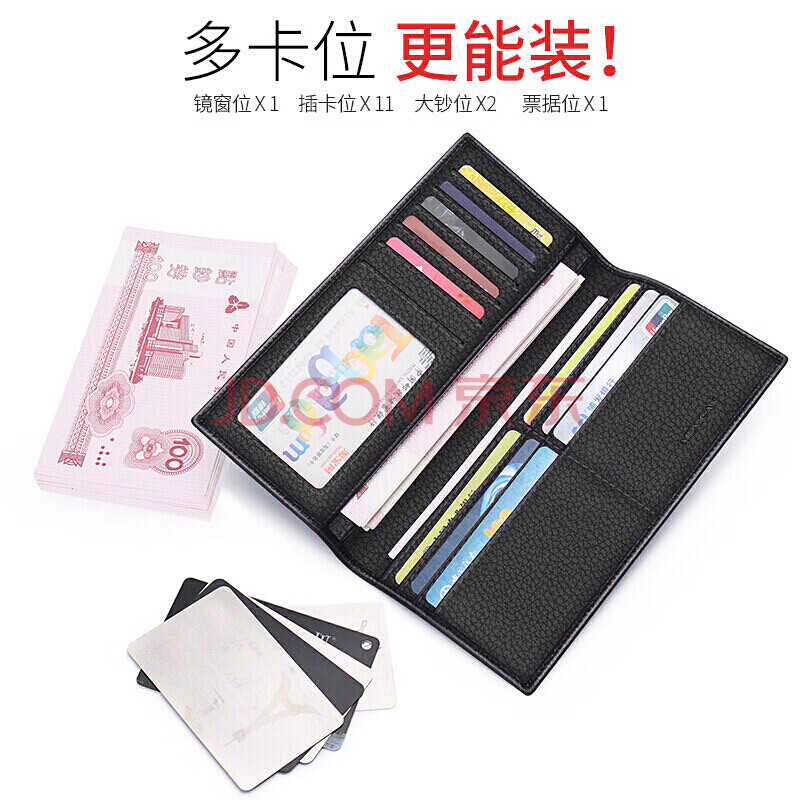 商品相册:稻草人男士钱包商务休闲头层牛皮超薄长款钱夹时尚皮夹黑色情人节礼物第