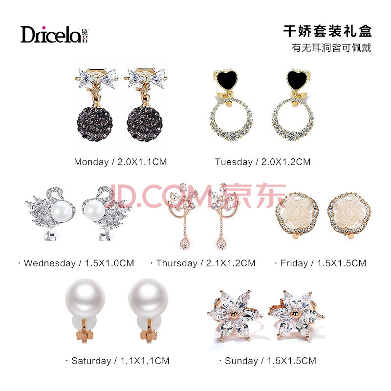 商品相册:黛若无耳洞耳夹女一周星期耳环套装显瘦高级感轻奢送女友实用生日礼物第