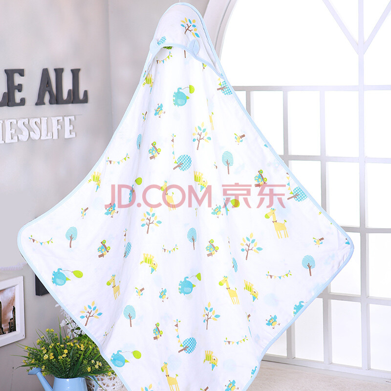 商品相册:喜亲宝 婴儿抱被产房包单纱布产房包巾裹单新生儿带帽浴巾90*90CM蓝色第