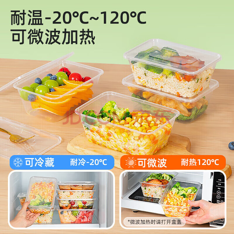 商品相册:特美居(temeiju)一次性饭盒长方形透明塑料快餐盒加厚带盖打包盒餐具50套装1000型第