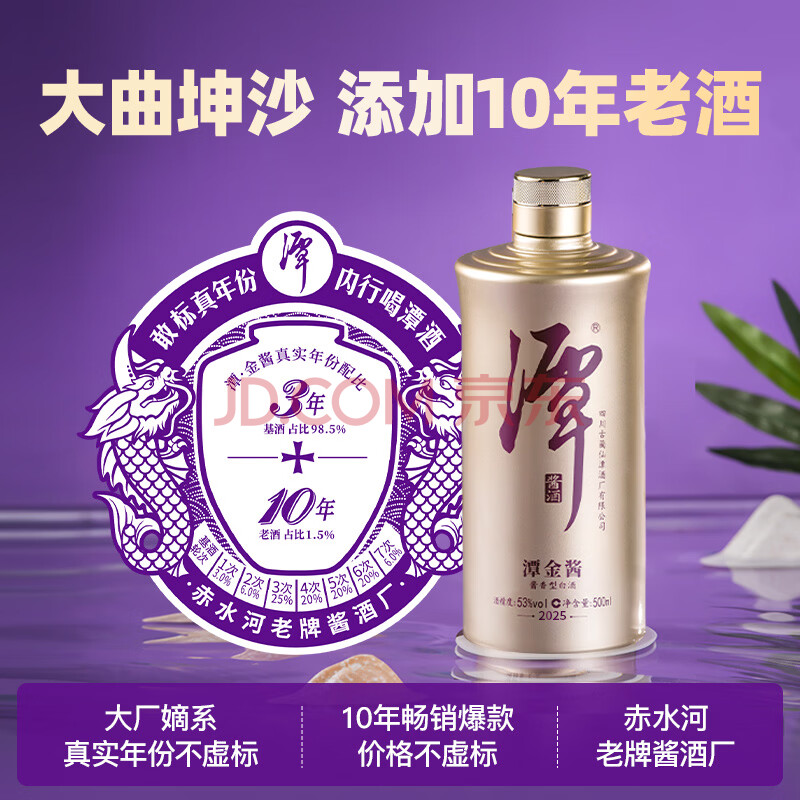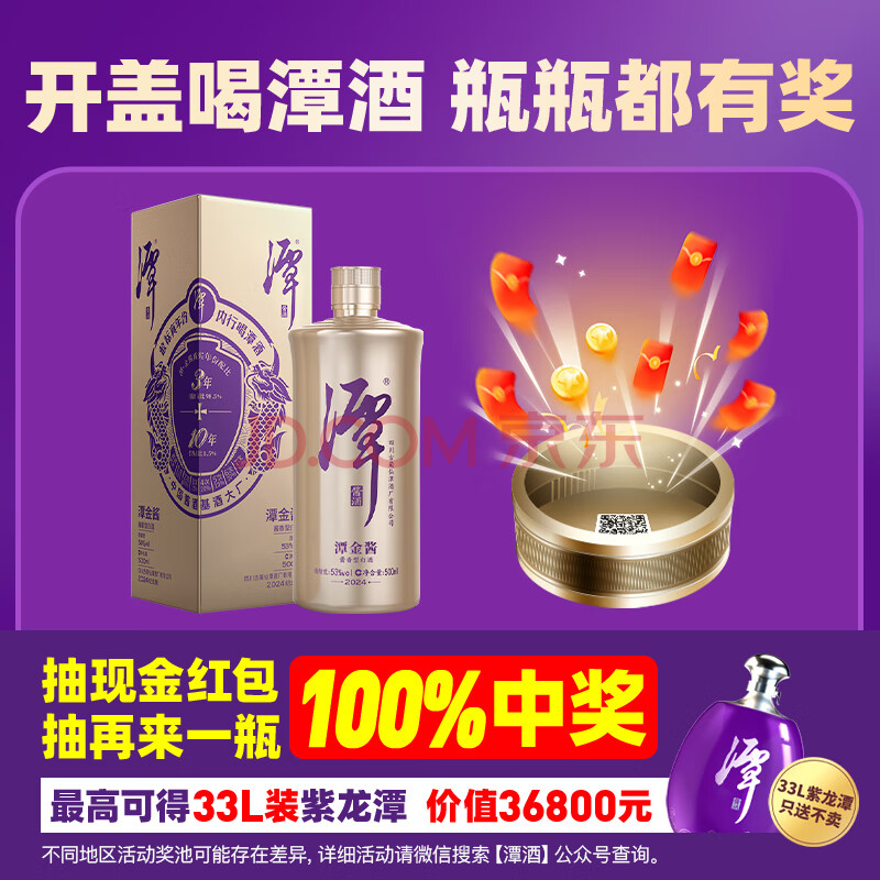 商品相册:潭酒 潭金酱 酱香型白酒 53度 500ml 单瓶装(年份版本随机)第