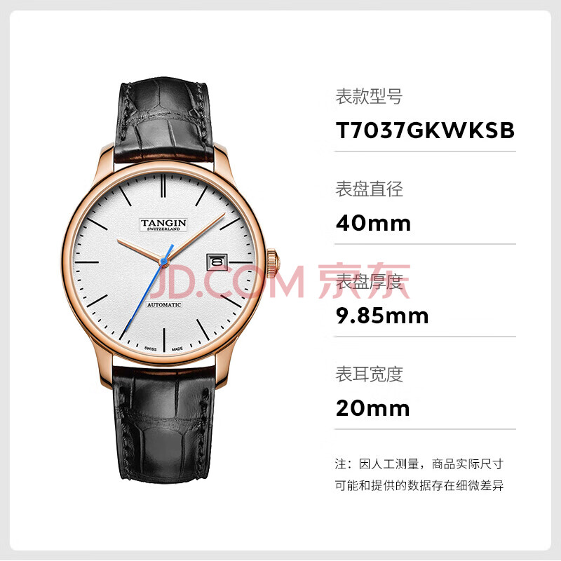 商品相册:天珺(TANGIN)男士机械表 日历全自动进口瑞士手表男机械 送男友 T7037GKWKSB第