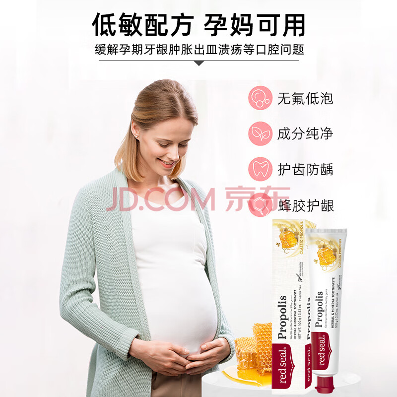 商品相册:红印(Red seal) 新西兰进口蜂胶牙膏100g*2支 无氟牙膏 孕妇可用 清洁护龈第