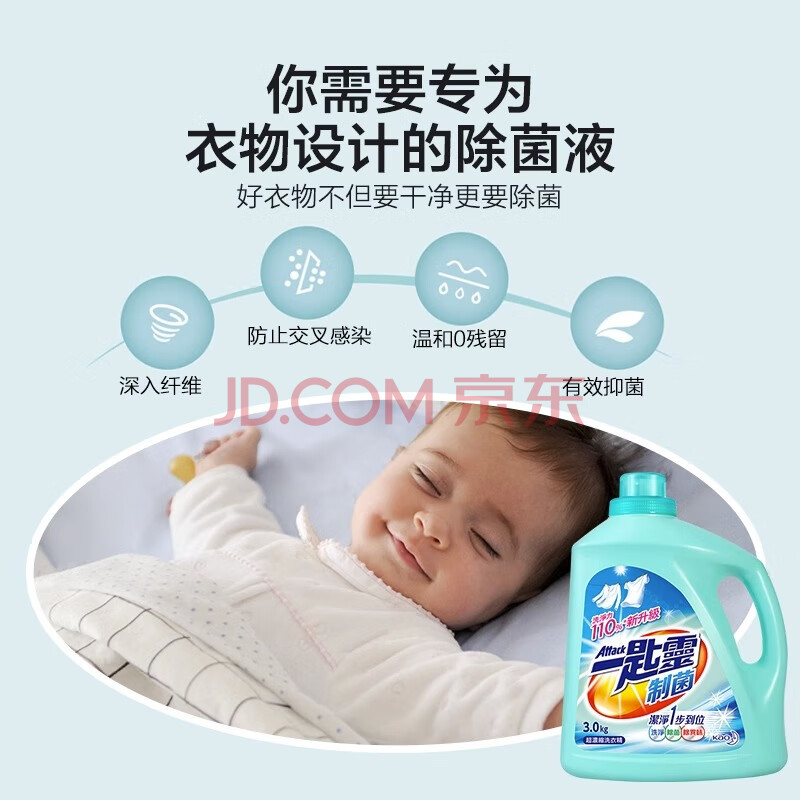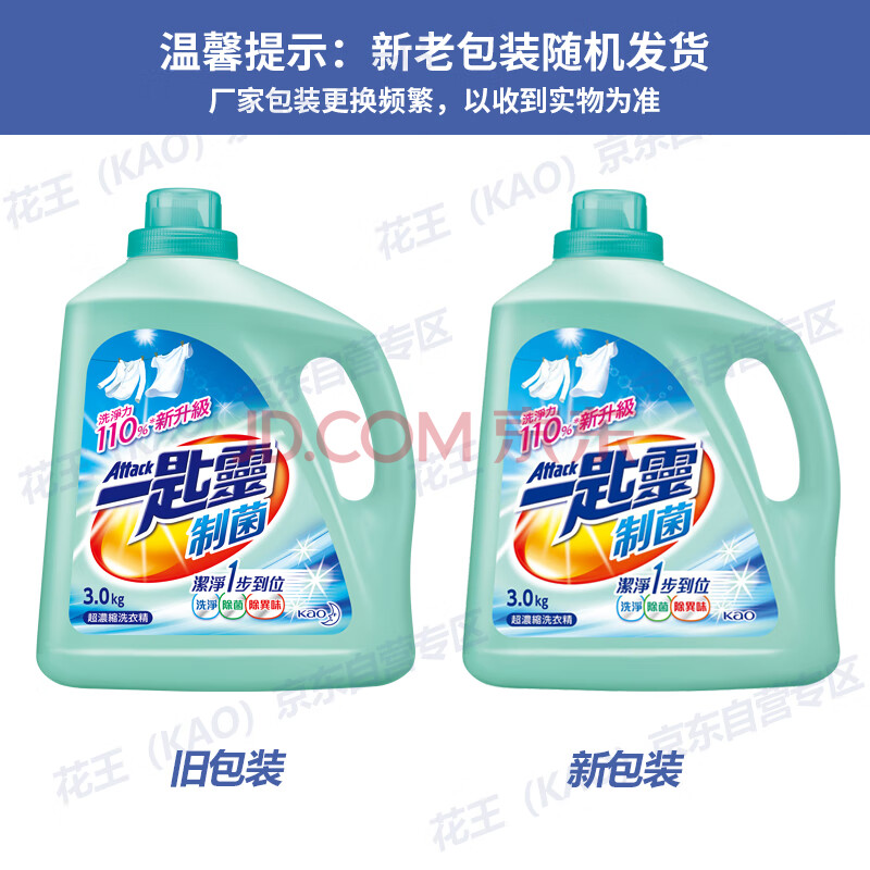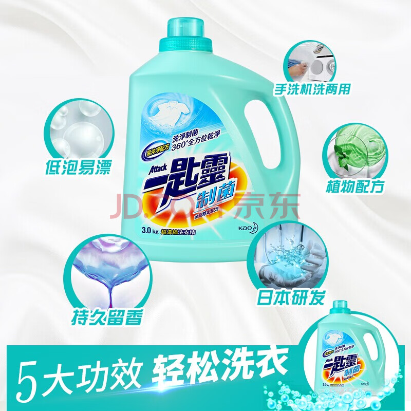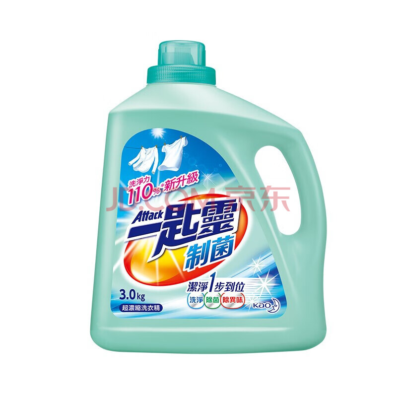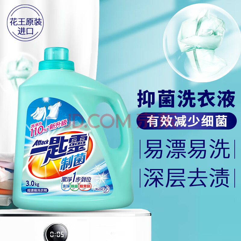 商品相册:花王(KAO)一匙灵制菌洗衣液3kg 抑菌除垢除味去污渍持久留香型家庭装第