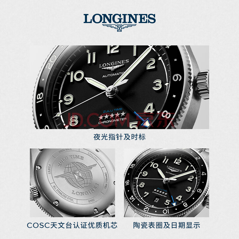 商品相册:浪琴(LONGINES)瑞士手表 先行者系列祖鲁时间腕表 男士钢带机械表 L38124536第