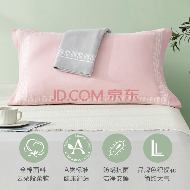 商品相册:罗莱家纺 全棉枕巾抗菌防螨单人纯棉枕头巾 粉色 50*80cm第