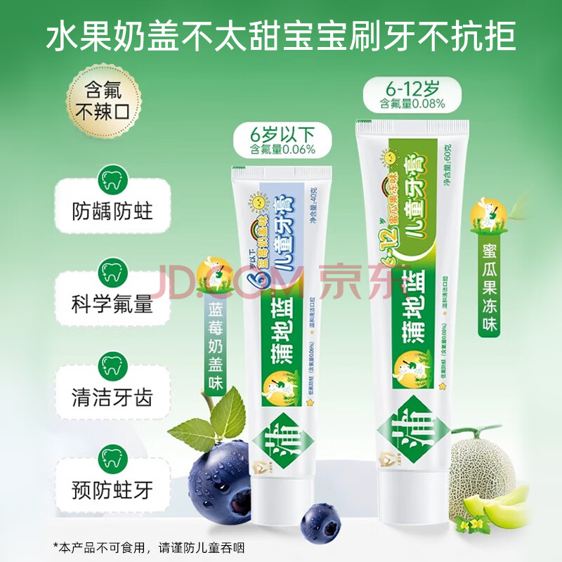 商品相册:蒲地蓝儿童牙膏6-12岁换牙期60g 草莓味 低氟防蛀 呵护幼牙第
