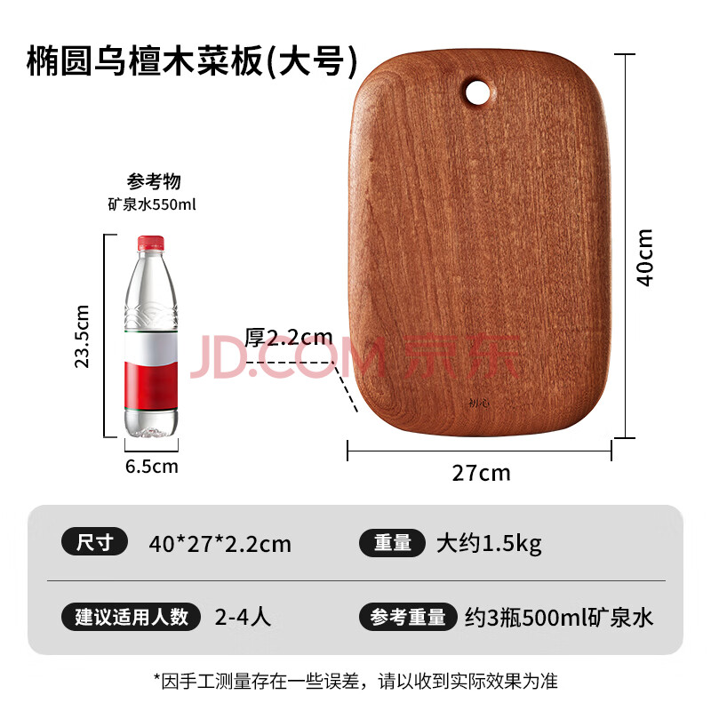 商品相册:初心乌檀木砧板抗菌防霉切菜板水果板婴儿辅食板案板刀板40*27*2第