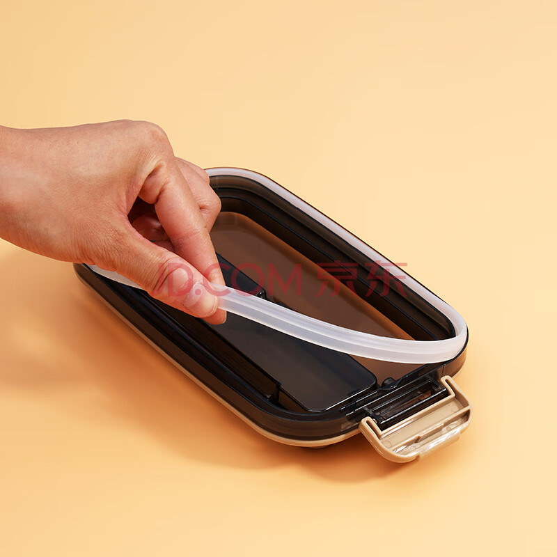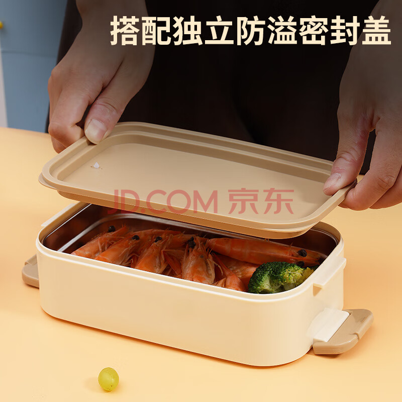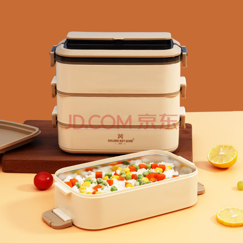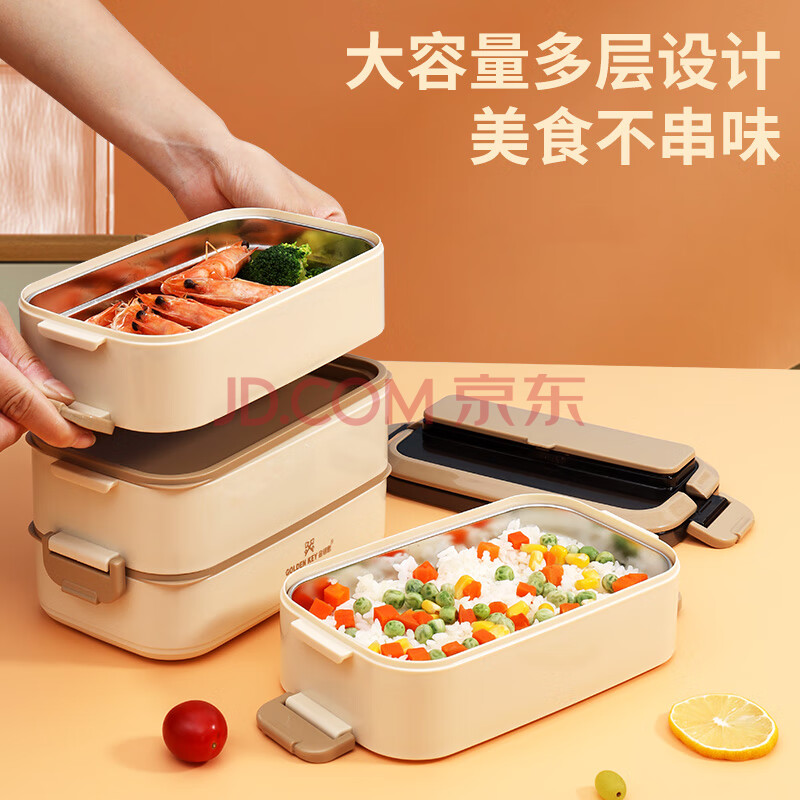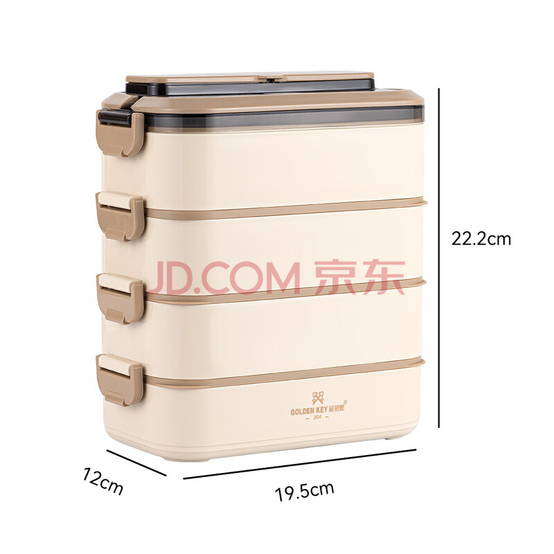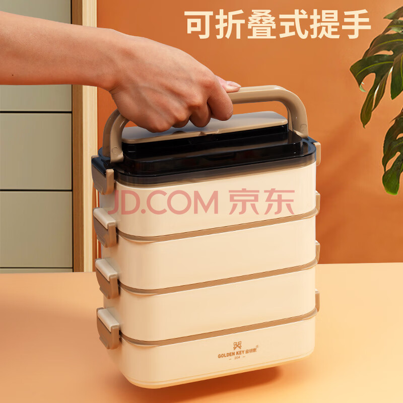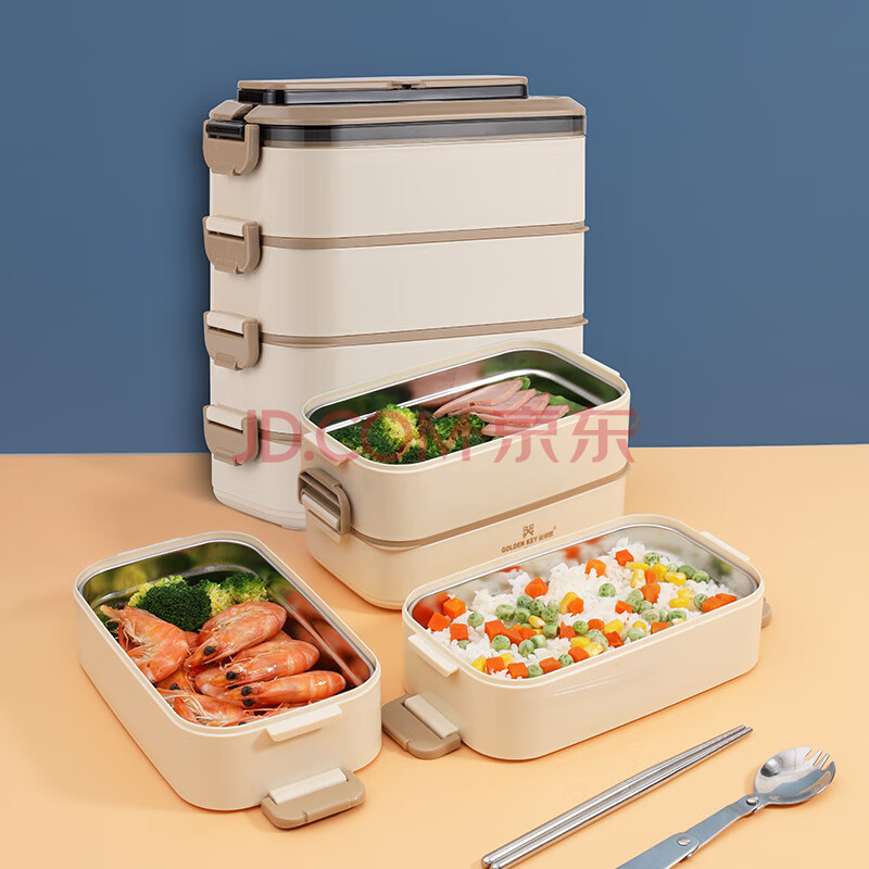 商品相册:金钥匙(GOLDEN KEY)304不锈钢2.8L防溢四层便当多层可组合保温饭盒卡其色GK-2800FH-K第