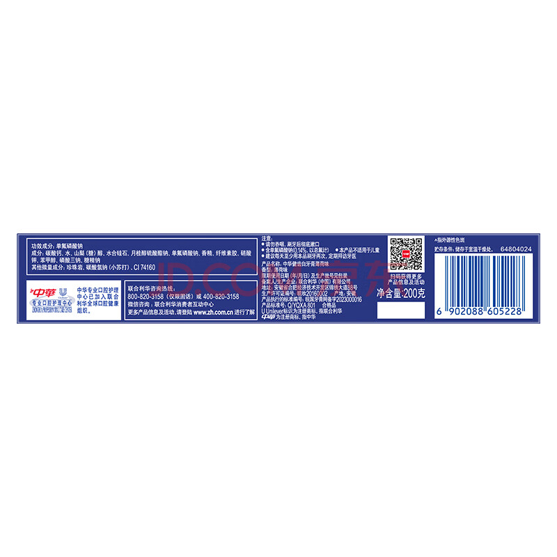 商品相册:中华健齿白小苏打牙膏亮白去渍美白去黄清新口气多效清洁薄荷味200g第