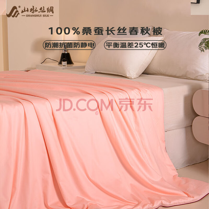商品相册:山水丝绸蚕丝被100%桑蚕丝子母被二合一四季被加厚喜被净重2+4斤220*240cm第