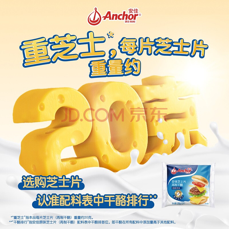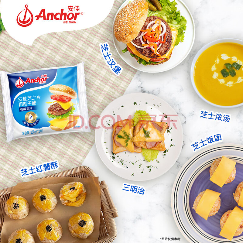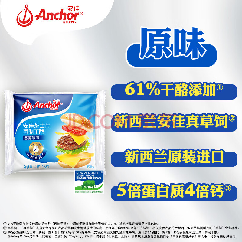 商品相册:安佳(Anchor)新西兰进口 切达干酪奶酪芝士片原味250g 烘焙三明治鸡排第1张/共7
