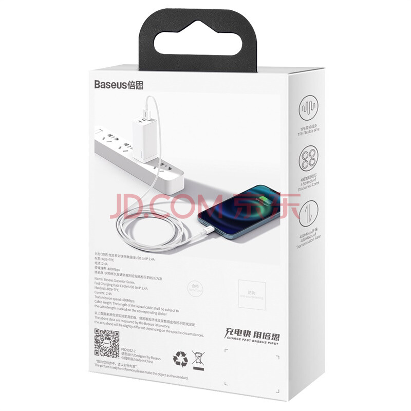 商品相册:倍思 苹果数据线2.4A快充充电线 适用iphone14/13/12/11/Xs Max/XR/8/7/6s plus/iPad充电器线 1.5米白第