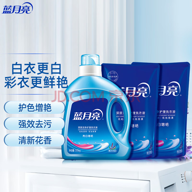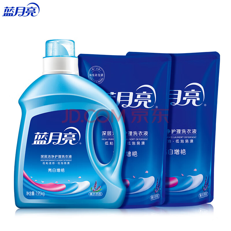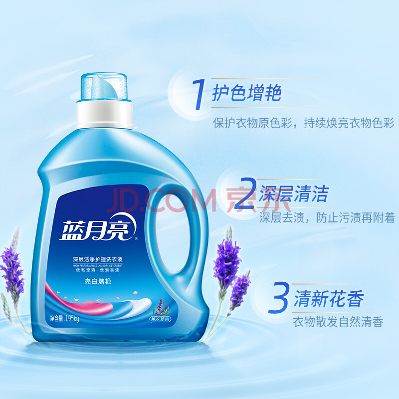 商品相册:蓝月亮 亮白增艳洗衣液 薰衣草香1.95kg瓶+500g*2袋 洁净去污 护衣护色第