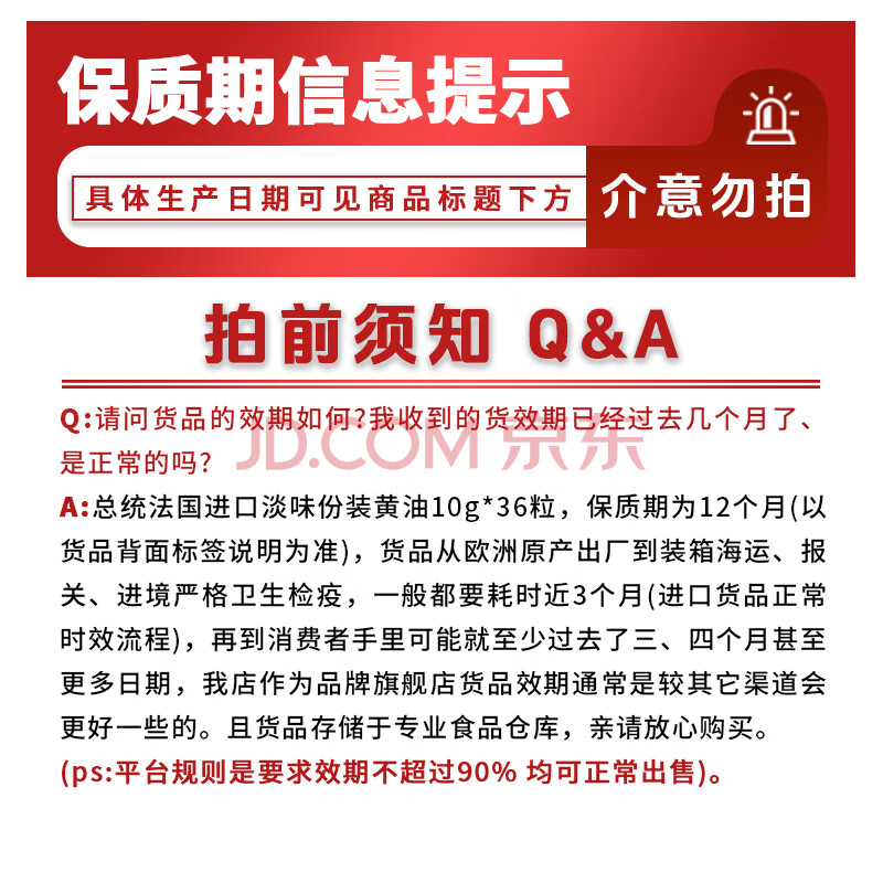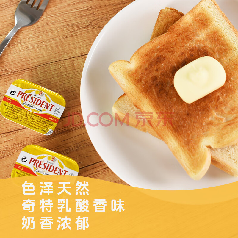 商品相册:总统(President)法国进口淡味份装黄油10g*36粒一盒面包烘焙第