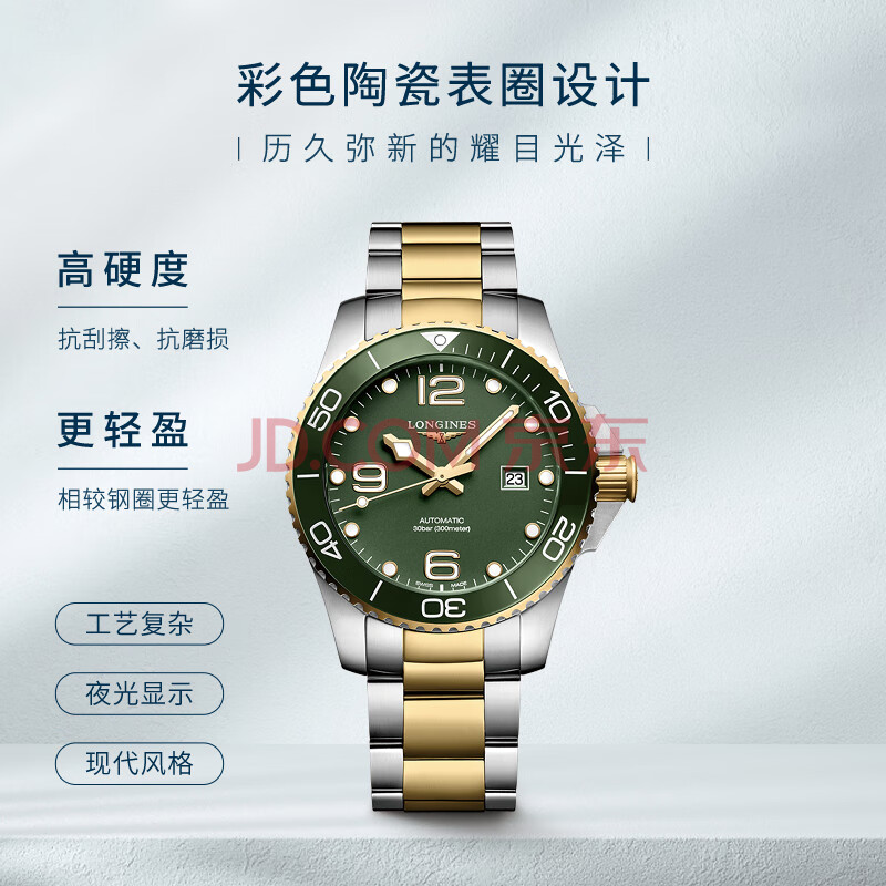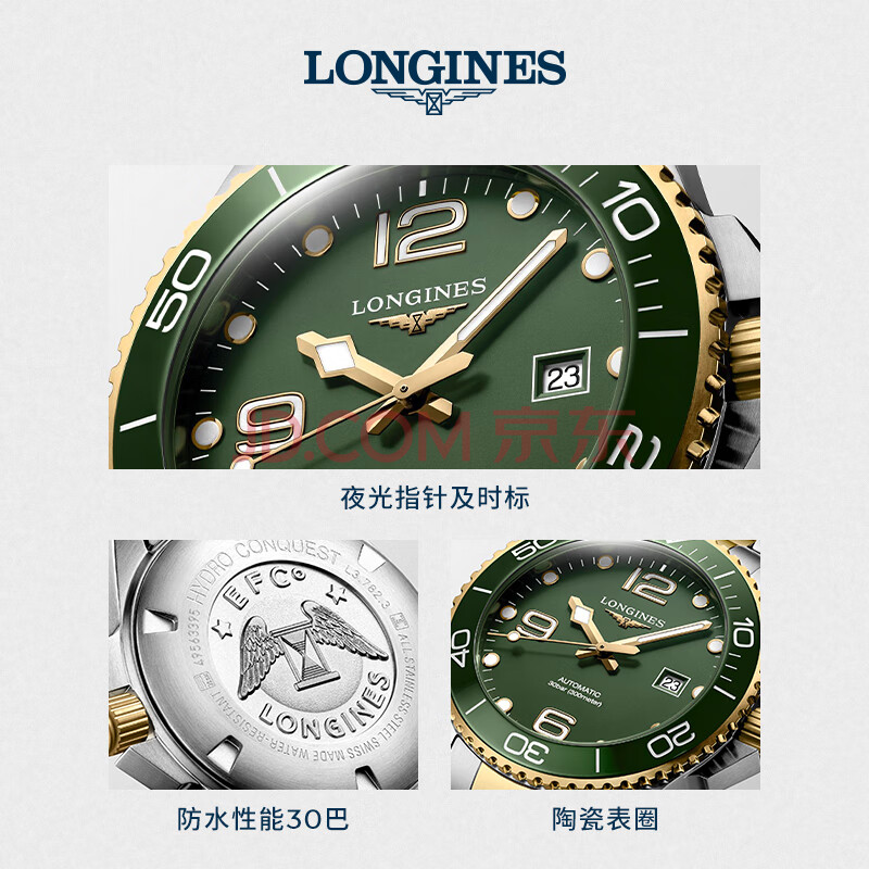 商品相册:浪琴(LONGINES)瑞士手表 康卡斯潜水系列 男士钢带机械表L37823067第