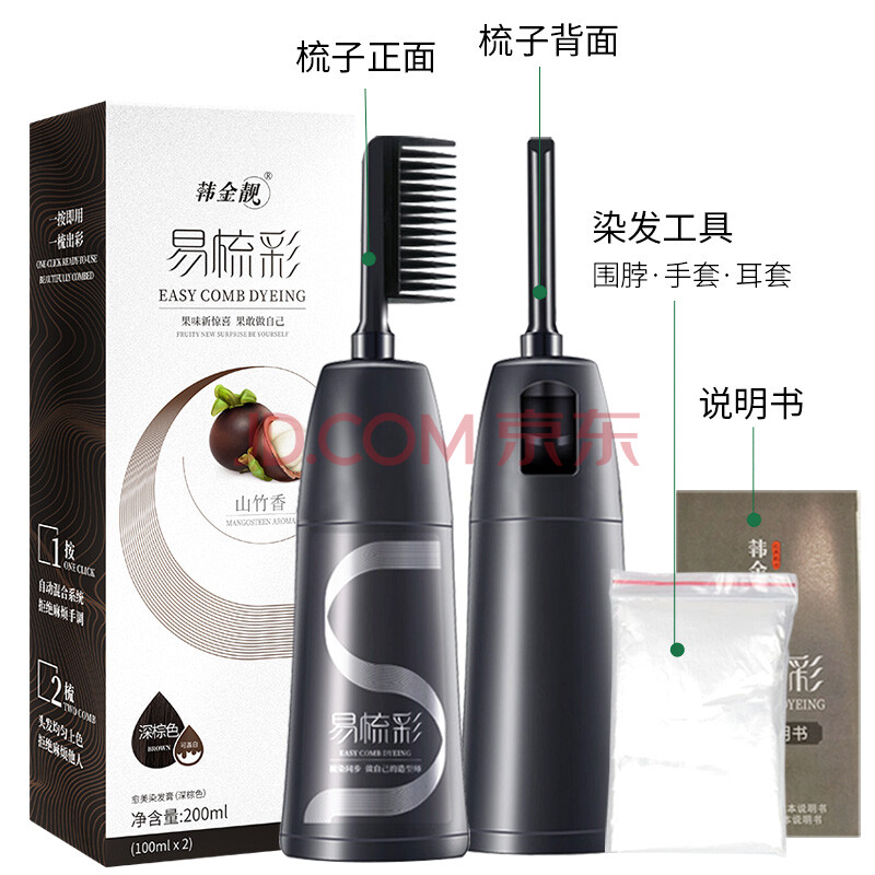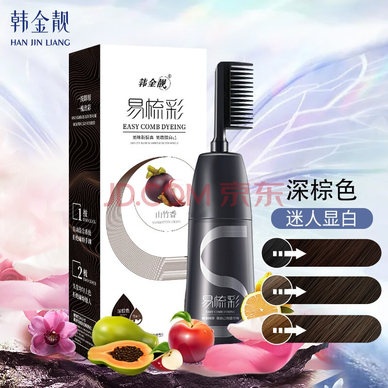 商品相册:韩金靓 易梳彩 深棕色 可盖白发 染发剂 200ml 男女士通用染发膏流行色 第