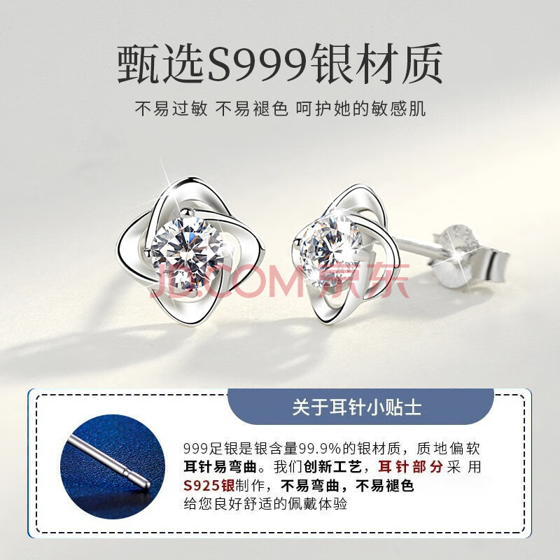 商品相册:唯一(Winy)999纯银耳钉生日礼物女士高级轻奢耳饰女2026年新款高级感第1张/共9