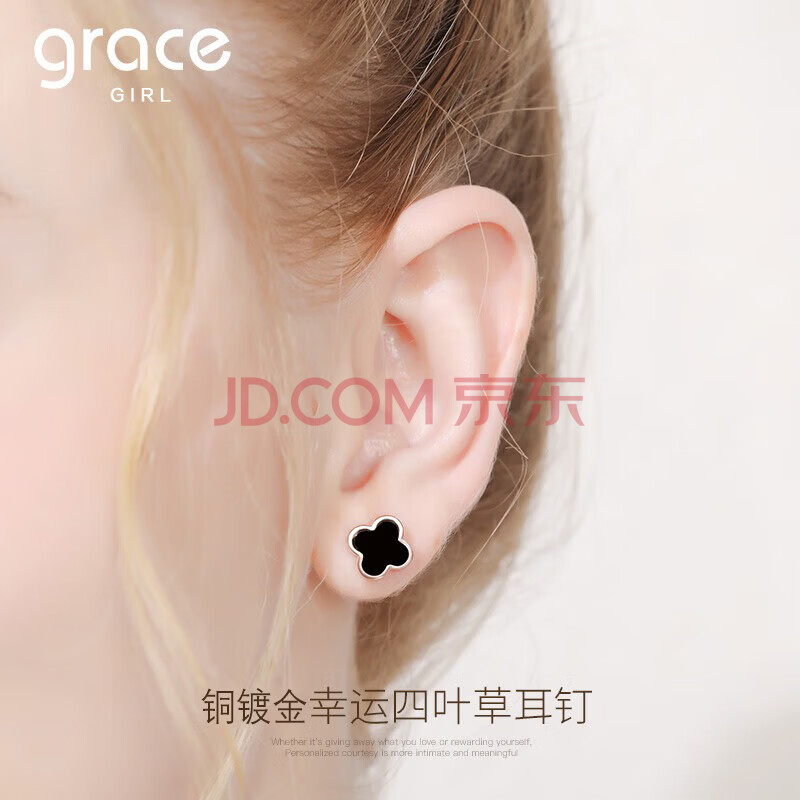 商品相册:Grace Girl四叶草耳钉女韩版简约气质时尚百搭耳饰生日实用纪念日礼物送女友第