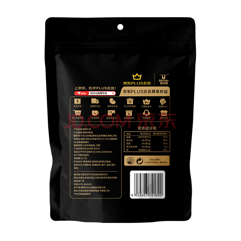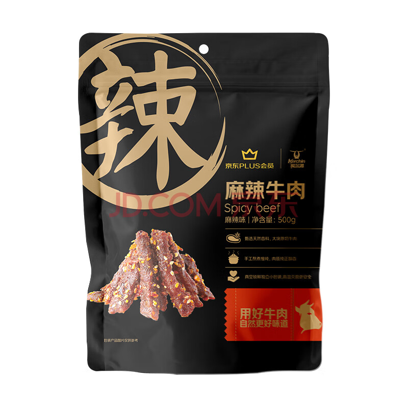 商品相册:科尔沁 PLUS会员联名款麻辣牛肉500g量贩装 休闲零食 牛肉干肉脯小吃第