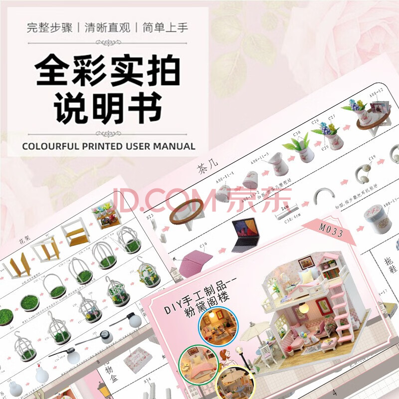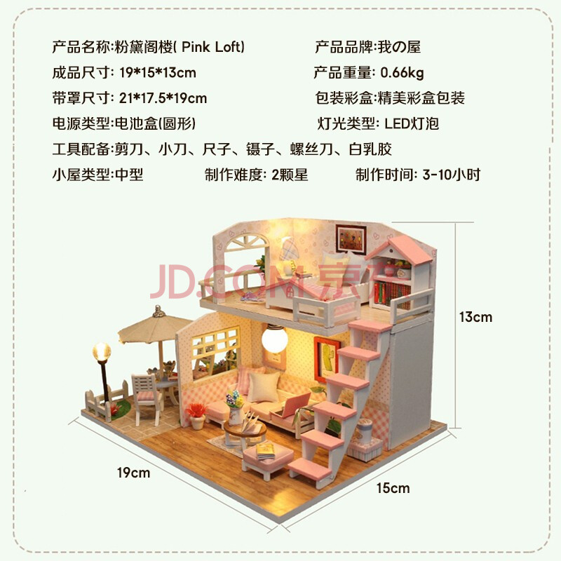 商品相册:我の屋DIY小屋粉黛阁楼手工房子模型木质娃娃屋立体拼图玩具生日礼物女第