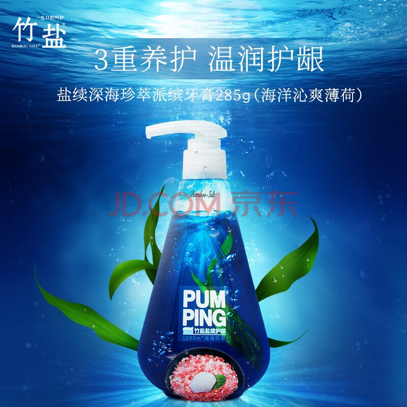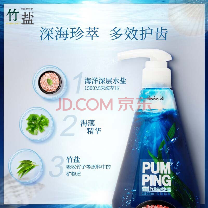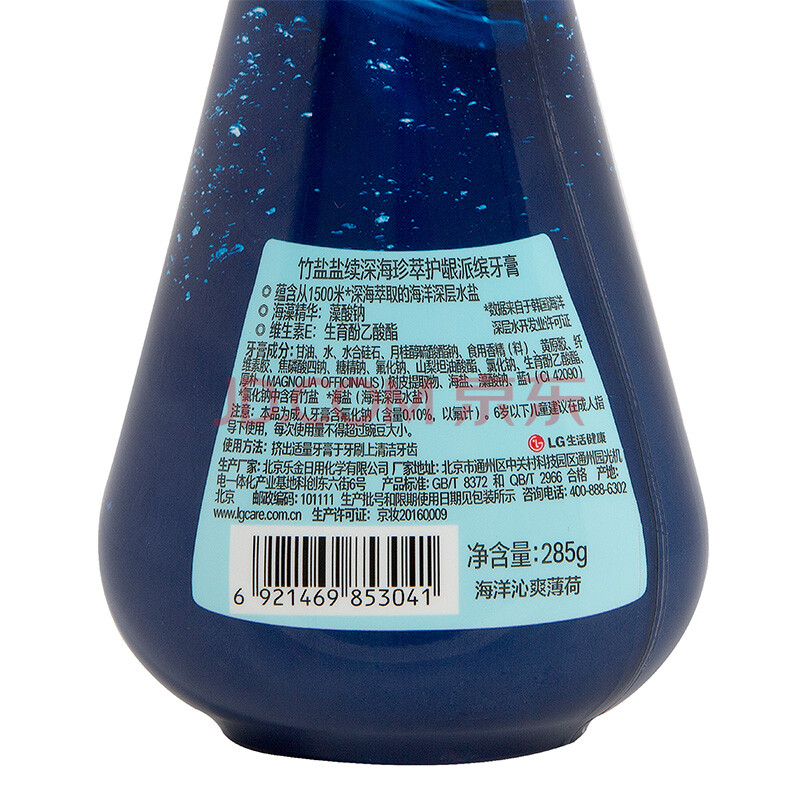 商品相册:竹盐LG派缤按压式牙膏285g*1瓶深海珍萃清爽口感减轻牙渍清洁口腔第