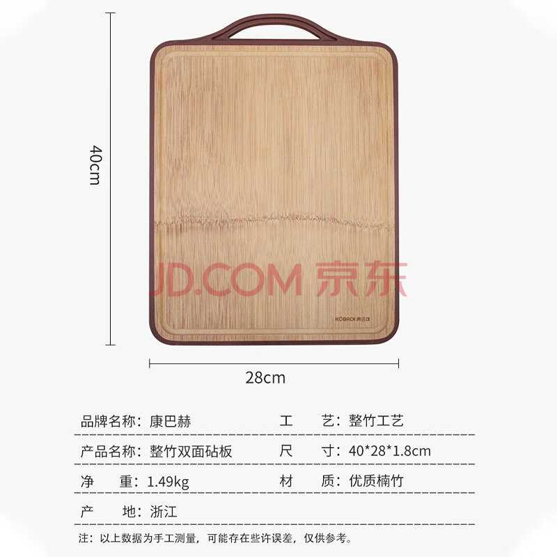 商品相册:康巴赫双面菜板切菜板砧板加厚案板厨房家用切菜板剁骨菜板40*28cm第