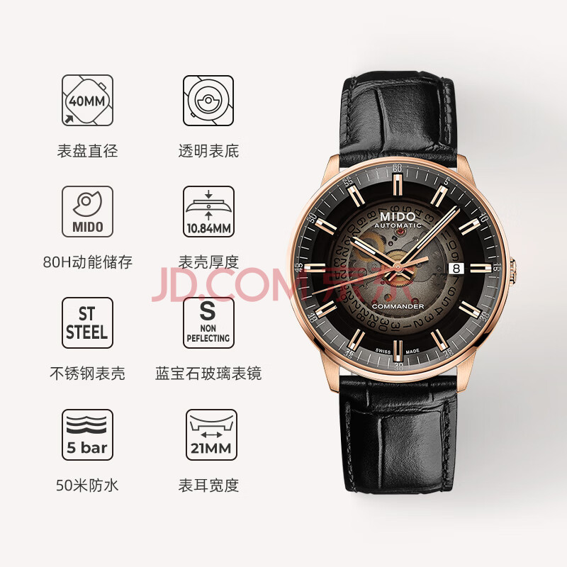 商品相册:美度(MIDO)瑞士手表 指挥官 幻影款 商务休闲 机械皮带男表送男友第