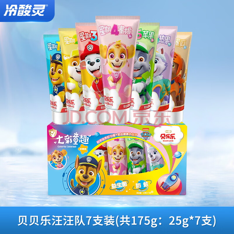 商品相册:冷酸灵贝乐乐汪汪队七彩儿童牙膏套装防蛀呵护25g*7支共175g第